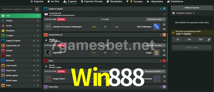 O Win888 oferece uma grande seleção de opções de apostas em e-sports com probabilidades competitivas